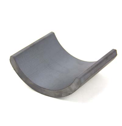 铁氧体是应用最广泛的的一种永磁材料,以粉末冶金法制造,主要分为钡料(Ba)和锶料(Sr)两种,并分为各向异性和各向同性两类,是不易退磁不易腐蚀的一种永磁材料,最高工作温度可达250摄氏度,较坚硬且脆,可用金刚石沙等工具切割加工,用合金刚加工之模具一次成型。此类产品大量应用于永磁电机(Motor)和扬声器(Speaker)等领域。