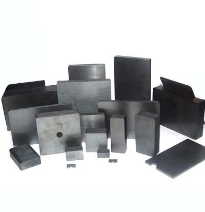 铁氧体是应用最广泛的的一种永磁材料,以粉末冶金法制造,主要分为钡料(Ba)和锶料(Sr)两种,并分为各向异性和各向同性两类,是不易退磁不易腐蚀的一种永磁材料,最高工作温度可达250摄氏度,较坚硬且脆,可用金刚石沙等工具切割加工,用合金刚加工之模具一次成型。此类产品大量应用于永磁电机(Motor)和扬声器(Speaker)等领域。